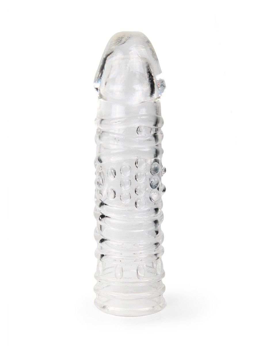 Прозрачная насадка на пенис для увеличения длины и толщины полового члена. Поможет мужчине избавится от комплексов и почувствовать себя настоящим мачо, а его партнёрше подарит множество потрясающих эмоций и незабываемый оргазм. Ярко выраженная мягкая головка, рельефная поверхность с разнообразными выпуклостями и шипиками за счёт трения о стенки влагалища или ануса усилит возбуждение женщины. Интимный аксессуар изготовлен из эластичного материала. Хорошо мнётся и тянется.