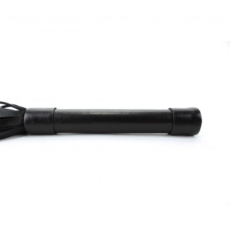 Аккуратная черная плетка, изготовленная из натуральной кожи. Имеет жесткую ручку, также покрытую кожей. Имеется петля для удобного использования плети. Длина хлыстов - 28 см.