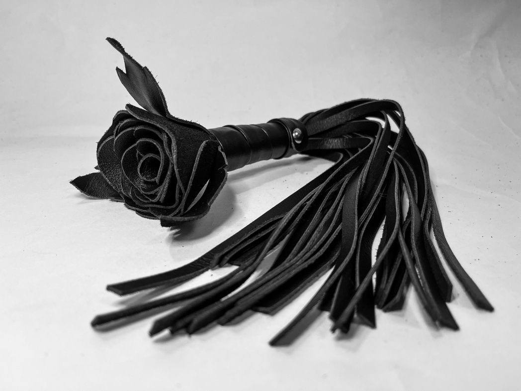 Восхитительная мини-плеть, украшенная чёрной розой. Цветок, рукоятка и хвосты плети полностью выполнены из натуральной мягкой кожи. Размеры этой плети очень изящны, поэтому данную плеть можно использовать, как генитальную, чтобы добавить новых ярких ощущений. Розочка очень удобно лежит в руке и создает неповторимую атмосферу и настроение, этот аксессуар никого не оставит равнодушным!