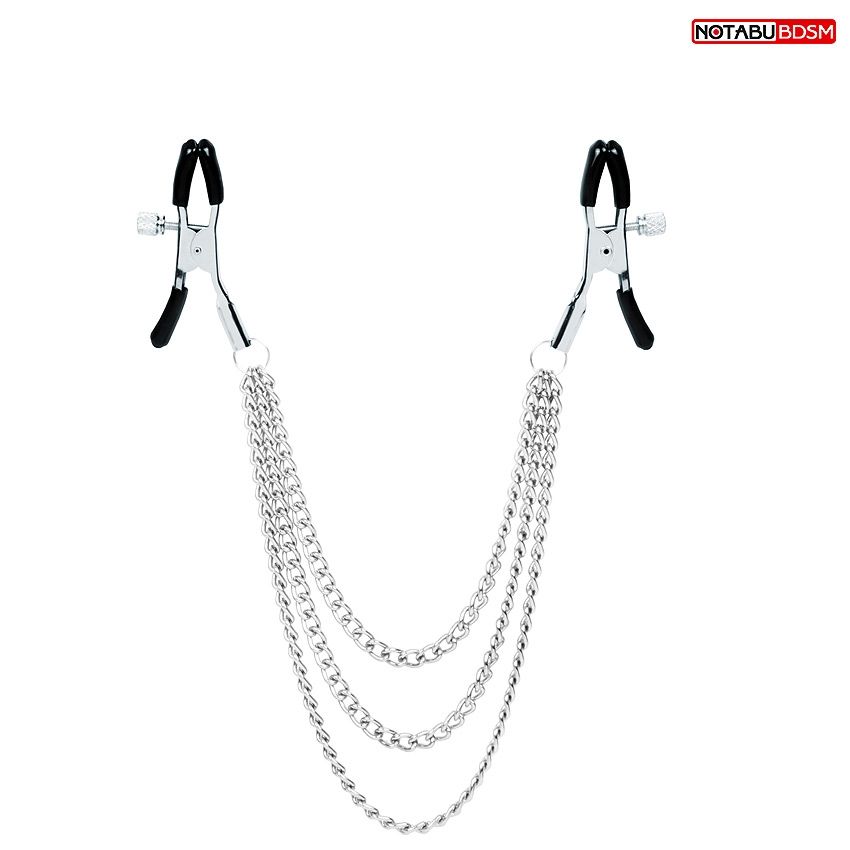 Изящные аксессуары для стимуляции сосков и усиления сексуального возбуждения. На концах зажимов имеются специальные эластичные накладки, препятствующие сильному сдавливанию и травмированию сосков. Подвески украшают секс-игрушки. На каждом изделии предусмотрен регулировочный винт, позволяющий контролировать силу сдавливания сосков. Интимные аксессуары могут использоваться соло или для парных любовных игр. Изделия просты в применении. Не требуют специального ухода.