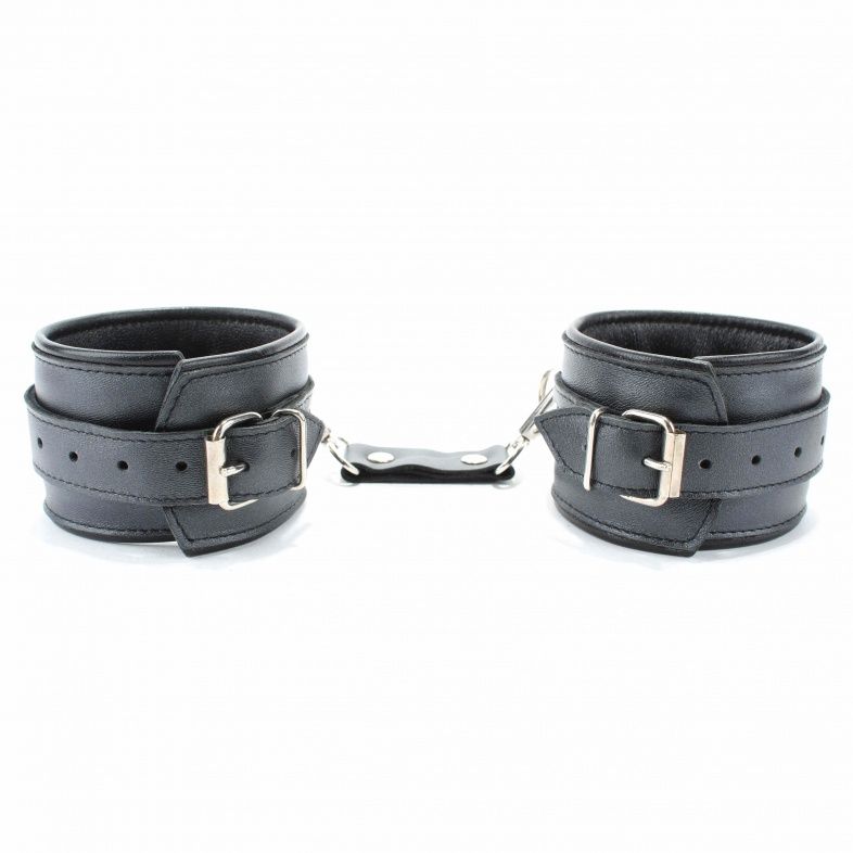Оживить эротические игры Вам помогут поножи. Этот интимный аксессуар пользуется успехом у мужчин. Выполненные в черном цвете и украшены прочными ремешками. Модный интимный аксессуар не сдавливает и не нарушает кровообращение, так как изготовлен из мягкой кожи. Чтобы любимая никуда не убежала, поножи соединены короткой перемычкой. Длина манжет - 29,5 см., ширина - 5,7 см. Длина перемычки - 6 см.