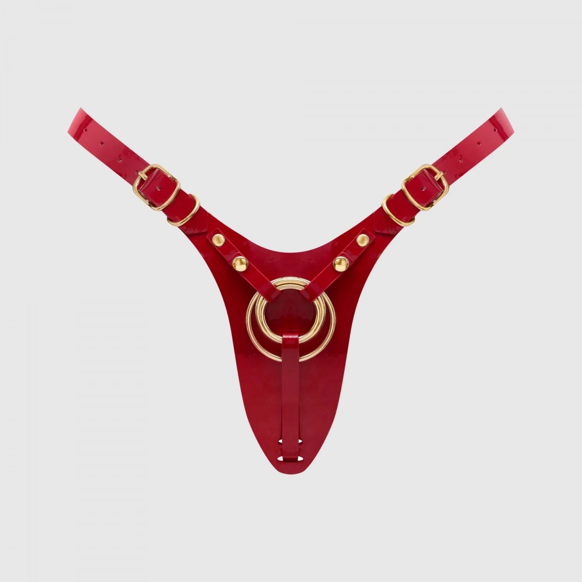 Роскошный пояс для страпона Fabulous бросает вызов условностям, переосмысливая классические стринги через призму бескомпромиссного гламура. Каждая деталь тщательно продумана: минималистичная спинка-стринги деликатно подчеркивает линию ягодиц, а глянцевое лаковое покрытие придает люксовый вид. Регулируемые лямки обеспечивают идеальную посадку и полную свободу движений. Три сменных металлических кольца гарантируют надежное крепление фаллоимитаторов разного размера. Диаметр колец - 3,5, 4 и 5 см.