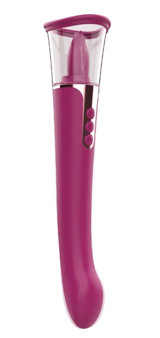 Двусторонний вибратор и вакуумная помпа, которые можно использовать не только для стимуляции клитора, но и сосков, и зоны G. Одна из сторон модели представляет собой классический вибратор с изогнутой головкой и глубокой вибрацией, удобной для стимуляции точки G. Если игрушку развернуть, ствол становится рукояткой, а вторая сторона – вакуумным стимулятором, который будет реалистично имитировать оральные ласки с эффектом посасывания. Воронка позволяет создать область пониженного давления, вызывающего прилив крови к эрогенной зоне. У игрушки 9 режимов вибрации, 3 режима вакуума, 9 режимов движения язычка, которые создадут широкий спектр ощущений. Одна игрушка подарит сразу несколько видов стимуляции. Диаметр чаши - 5,4 см. Длина язычка - 4 см. Длина ствола (без помпы) - 20,9 см.